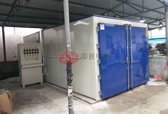本電爐結構與一般烘箱相似,由爐殼、內襯、爐門、小車、加熱元件、通風機裝置及溫控系統(tǒng)等組成。