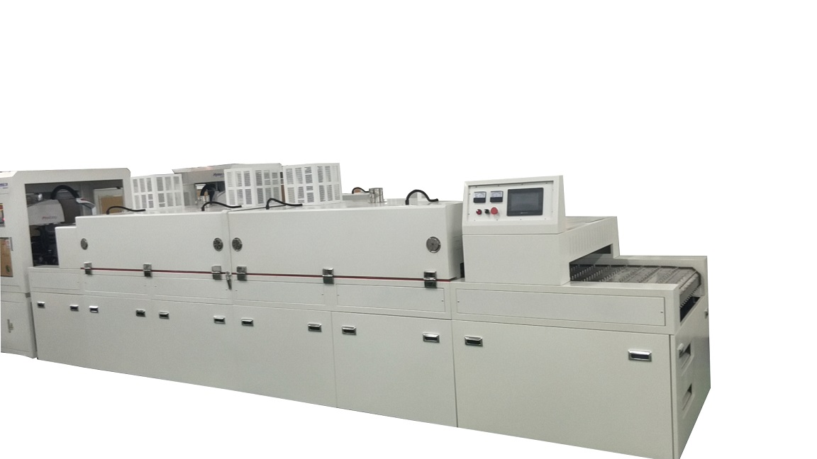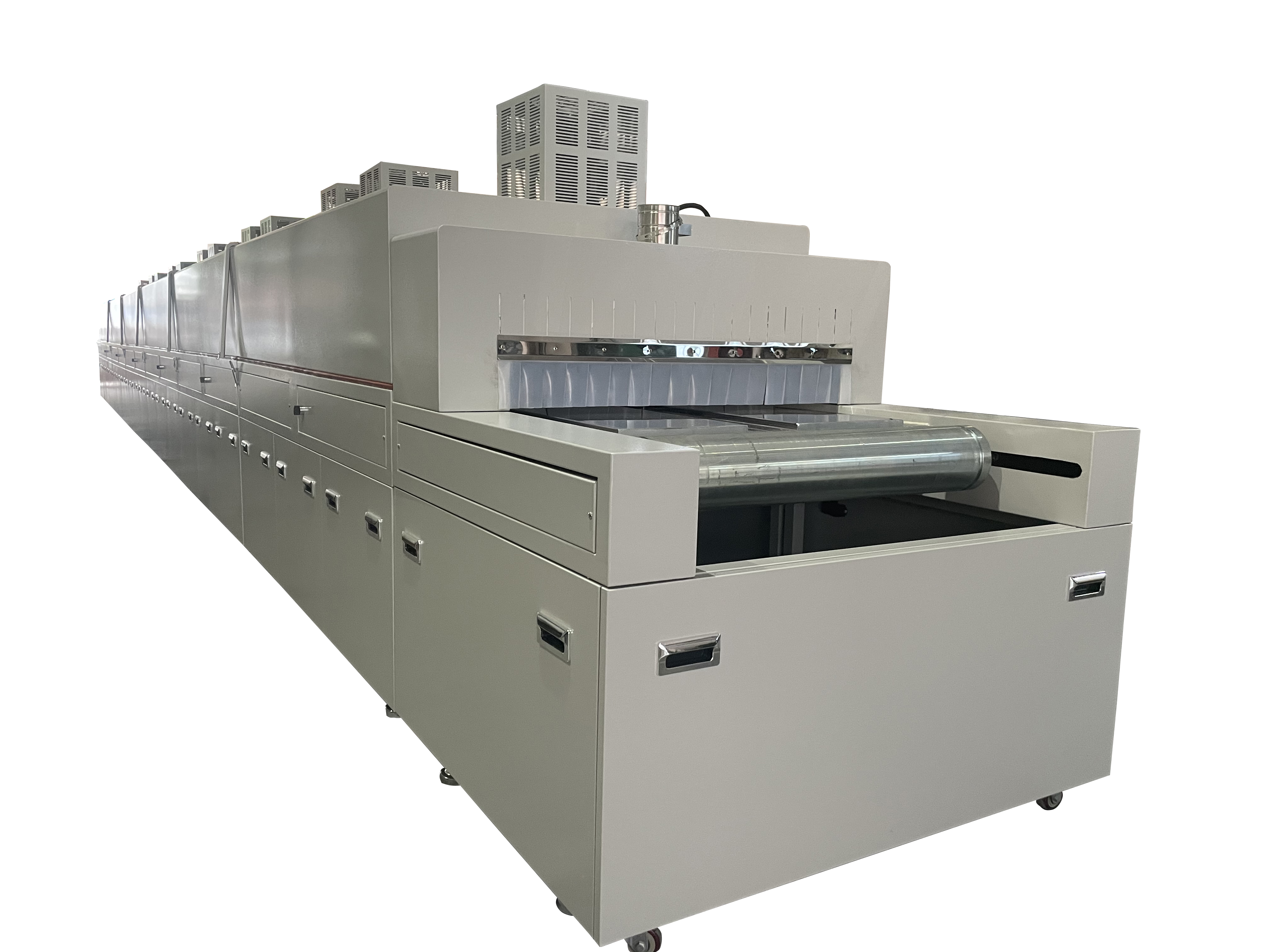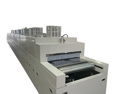 2、三個(gè)溫區(qū)分兩節(jié)爐蓋。產(chǎn)品進(jìn)料高度為220mm、進(jìn)料寬度為870mm,出口段內(nèi)部高度為790mm(配3個(gè)自動(dòng)升降門);烘干部分總長3350mm,