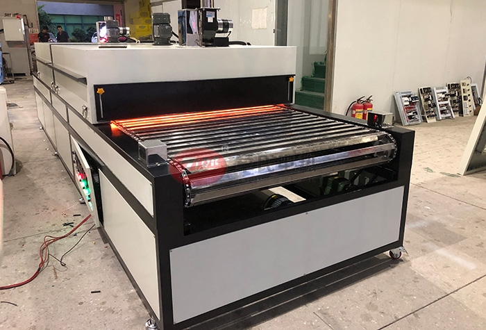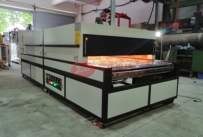 2、內(nèi)膽共5段爐腔,每段2米,爐腔總長10米.內(nèi)膽材質(zhì)采用1.2㎜厚SUS#304鏡面不銹鋼板制作,爐腔總高0.4米,進料口凈高度0.2米,設可調(diào)節(jié)檔板,中間100㎜厚高溫硅酸隔熱巖棉,網(wǎng)帶底部配有高溫隔熱層。使爐體外部不燙手.頂部配有進氣口和排氣口閥門,可調(diào)節(jié)室內(nèi)空氣流量,便溫度更加均勻.每段爐蓋均可獨立翻起打開.便于爐內(nèi)的清潔 。