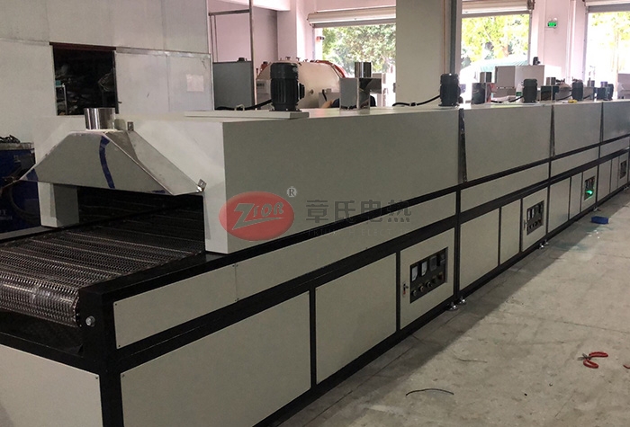 1、爐部分外形尺寸:線體總長12米,網(wǎng)帶寬1.0米,總高1.6米,出料部分長1米,烘干部分長10米,分為5段,進料部分長1米,冷卻區(qū)為0.4米,線體大梁支架和箱體外殼采用2.0㎜厚冷板折彎而成,整機外殼高溫靜電噴塑(非普通油漆)耐腐蝕易清洗,機架用50×50㎜方通焊接而成,配16㎜調(diào)節(jié)腳杯。